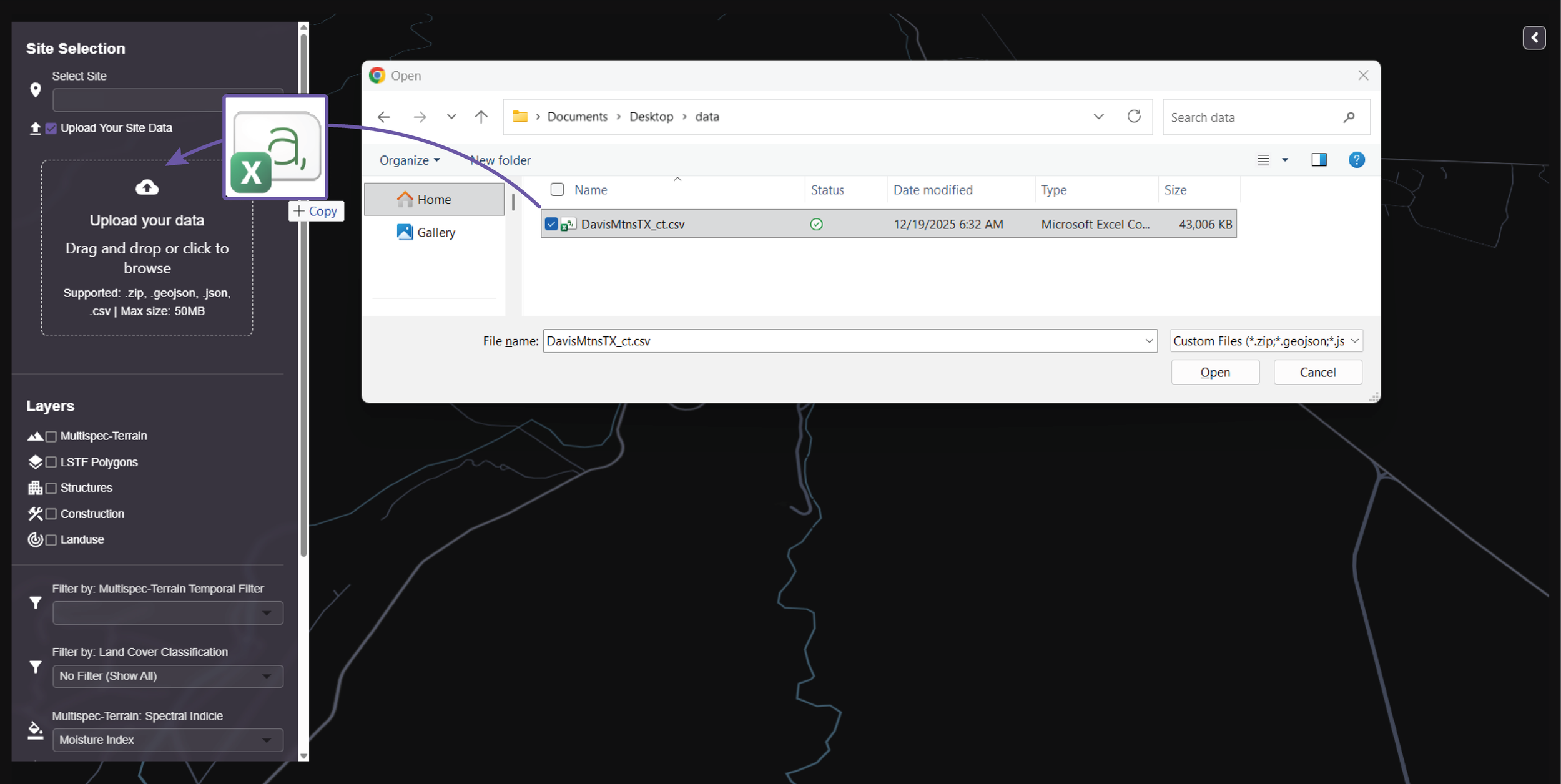 Dynamic Lands Lab Web App Interactive data visualization tools that let you explore your preprocessed site data in your browser Try the web app Dynamic Lands Lab Upload your preprocessed site data files Toggle between multiple uploaded sites Filter and, overlay and compare spatiotemporal data
